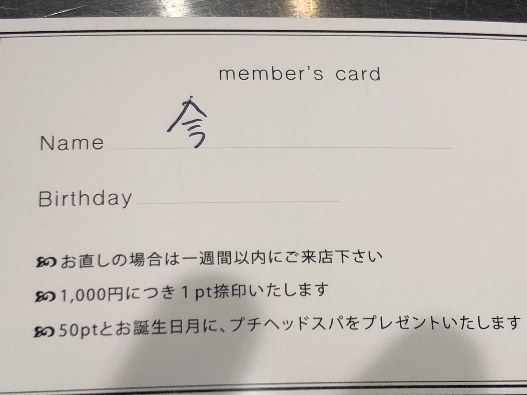 先週の営業中、新規のお客様のメンバーズカードを用意しとくの忘れてて、