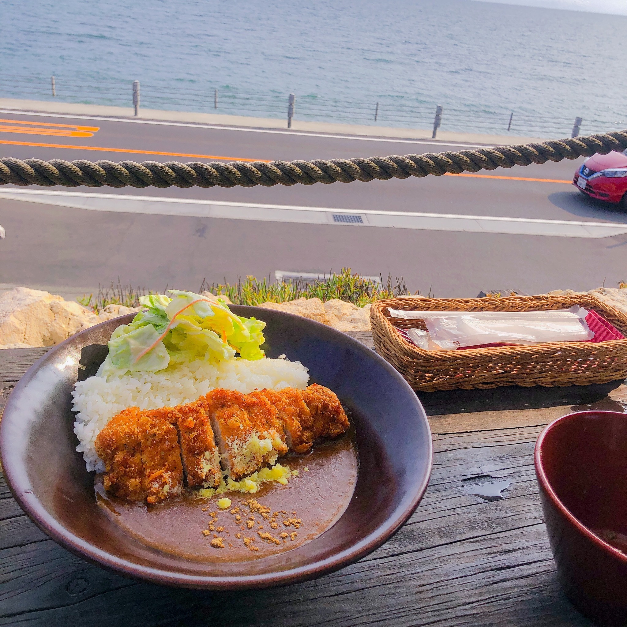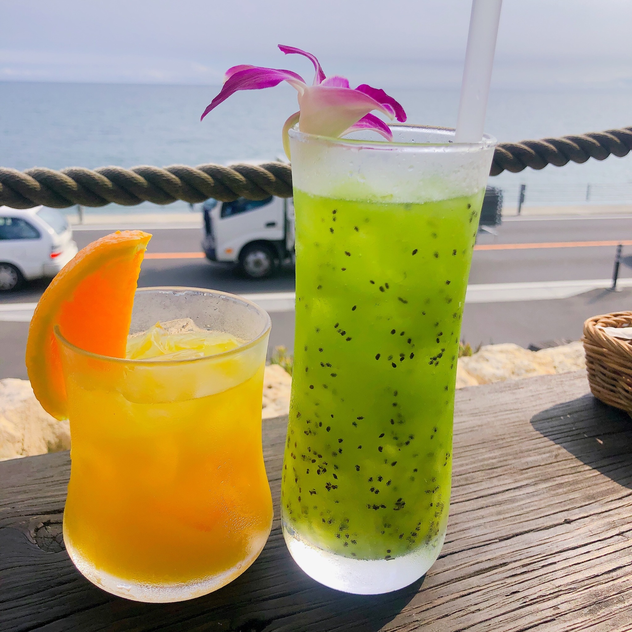 海沿いのテラス席で美味しい