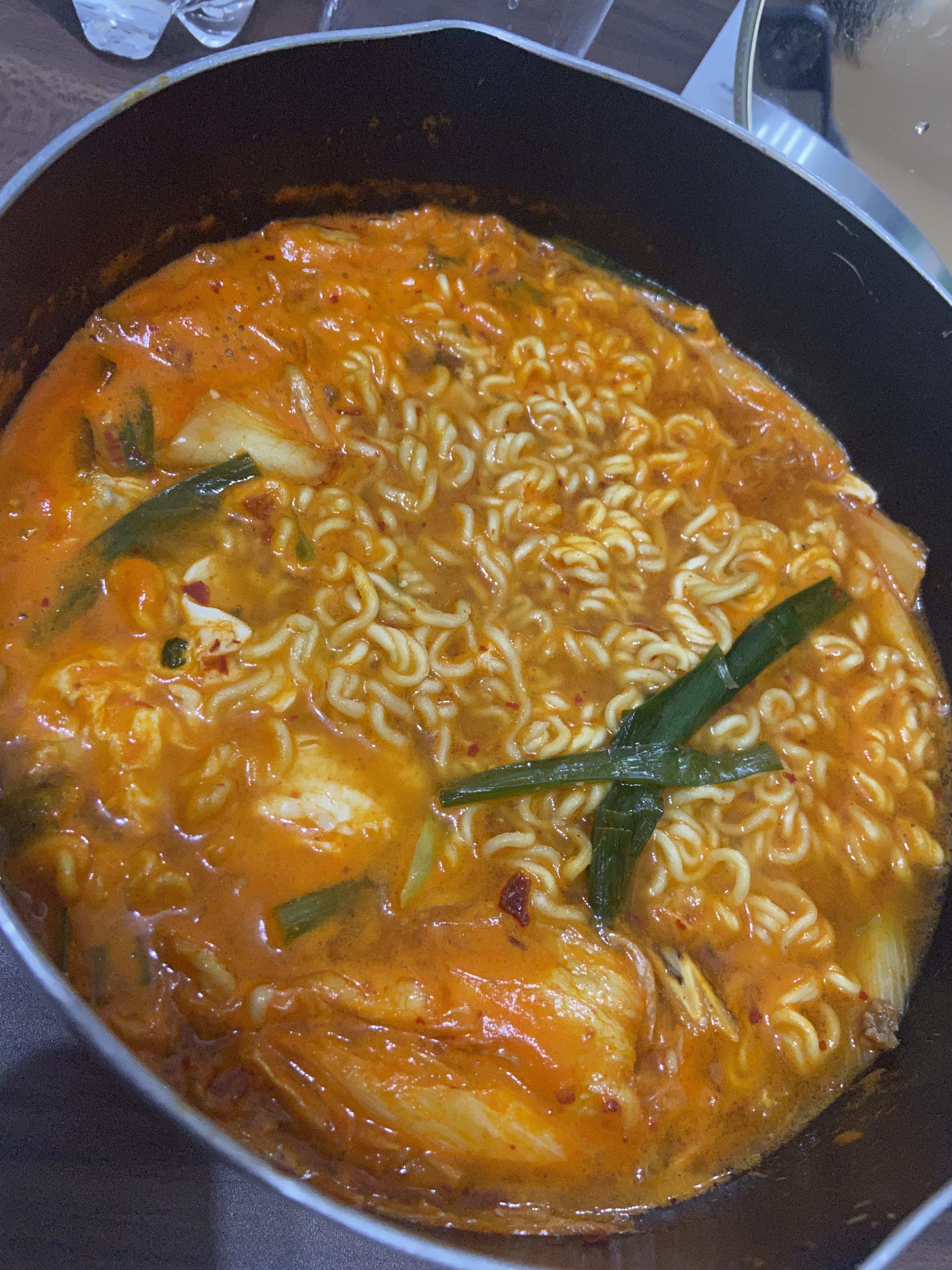 キムチとニラをたっぷりいれてラーメンも入れちゃいました(*^ω^*)