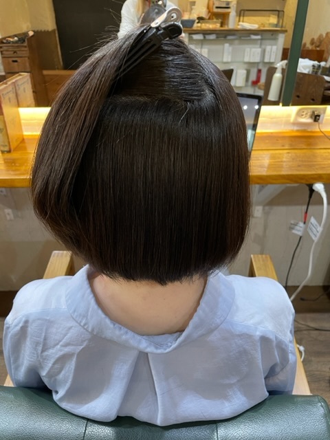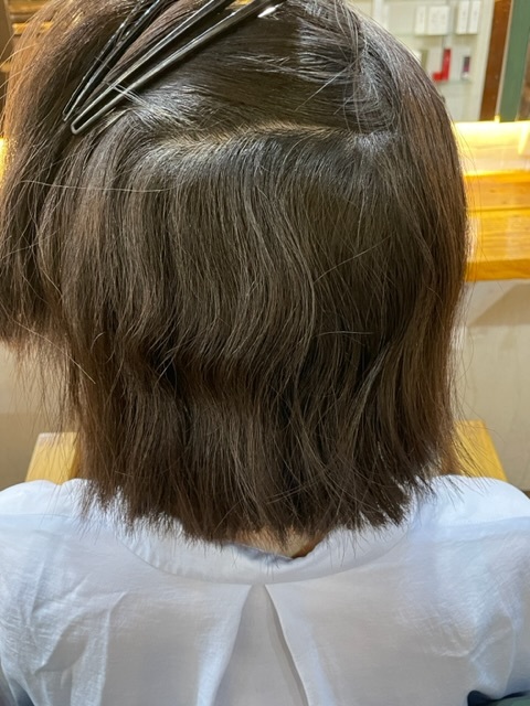 ボリュームがかなり抑えられてサラツヤな髪になりました。